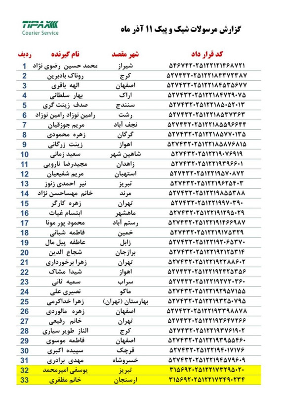 پیگیری کد مرسوله